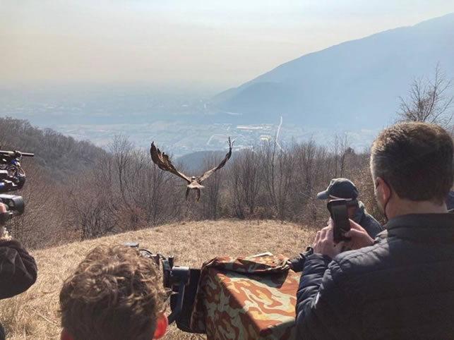 “Oggi abbiamo liberato un’aquila nel cielo delle montagne vicentine, un aquilotto,  curato grazie alla passione del Centro di recupero Rapaci di Fimon, tornato  libero, quasi a voler simboleggiare quella guarigione e liberazione dal Covid che noi tutti auspichiamo” Così il presidente del Consiglio regionale di Vicenza, Roberto Ciambetti, dopo la liberazione del rapace   in località Barricatella  in quel di Cogollo del Cegio (Vi) lungo la Strada provinciale che conduce ad Asiago, evento a cui hanno partecipato anche l’assessore regionale alla Caccia Cristiano Corazzari e in rappresentanza della Provincia di Vicenza il consigliere delegato Mattia Veronese. “Liberiamo  quest’Aquila a pochi giorni dall’inserimento tra i principi fondamentali della nostra carta costituzionale  della tutela dell’ambiente, della biodiversità e degli ecosistemi – ha detto Ciambetti – ma  il Veneto non aveva atteso di certo questa integrazione della Costituzione  per difendere l’ecosistema e proprio il Centro Rapaci di Fimon nel Vicentino, diretto con rara passione da Alberto Fagan,  è un esempio di tutela  della fauna selvatica: ogni anno in questo centro vengono curati e riabilitati tra i 150 e i 200 rapaci all’anno un numero incredibile che testimonia un impegno unico.  Quest’aquila liberata è un esempio concreto nella tutela dell’ecosistema da parte della Regione, è un simbolo per noi tutti, con la speranza oggi più che mai sentita di tornare a una vita libera, più sana, ecosostenibile e soprattutto più serena”. (Fonte CONSIGLIO REGIONALE VENETO)